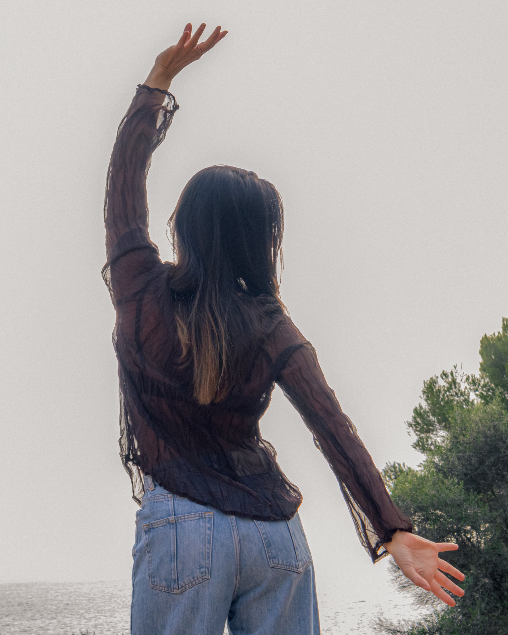 Blusa manga larga marrón transparente
