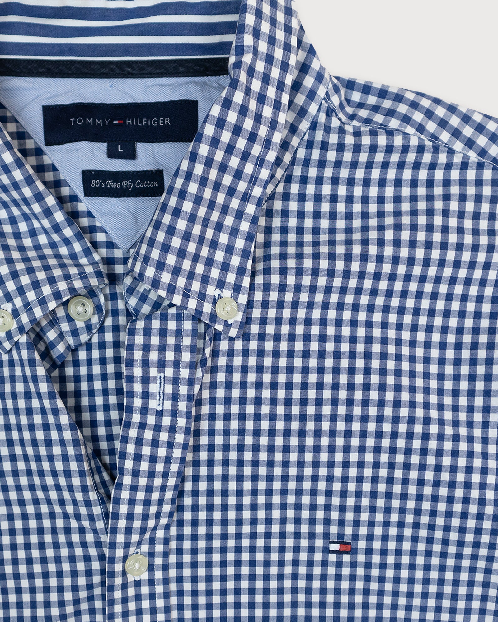 Camisa Tommy Hilfiger, manga larga, estampado cuadros azules y blancos